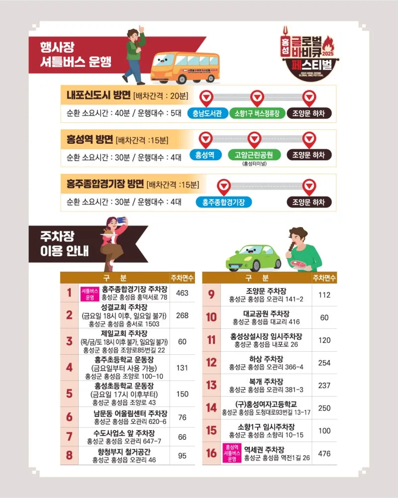 2025 홍성 글로벌 바비큐 페스티벌 행사장 셔틀버스 운행&주차장 이용 안내