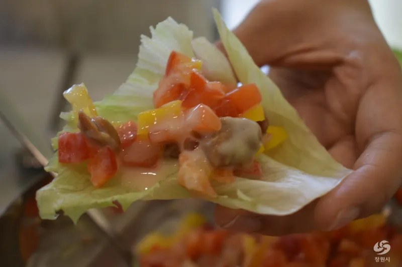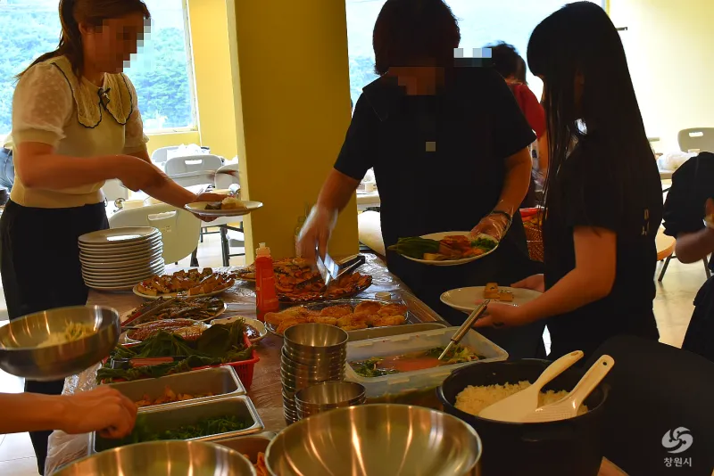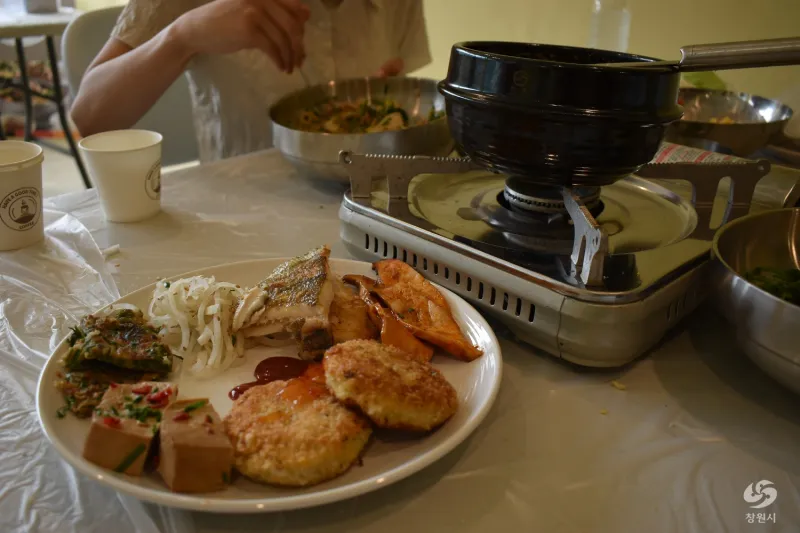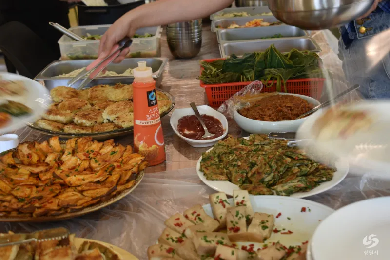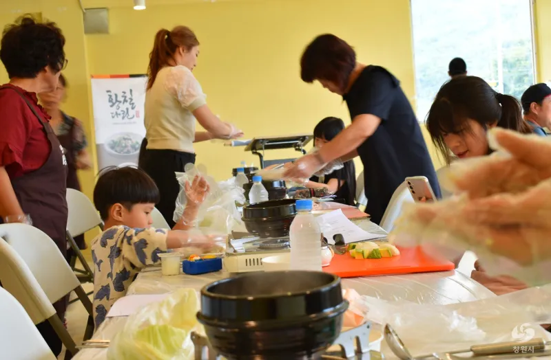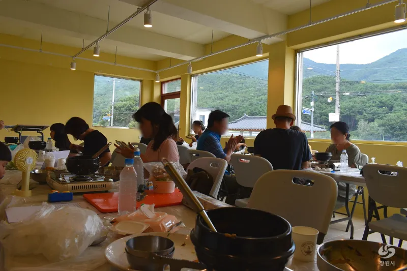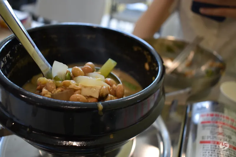 요리체험을 마치고 학동마을에서 정성껏 준비해 주신 여러 가지 음식과 직접 만든 청국찌개, 대두까스, 청국요거트 쌈을 함께 먹으며 담소를 나누었습니다. 청국장 하면 맛은 있지만 냄새 때문에 자주 먹기가 쉽지 않은데요. 오늘 체험한 청국장은 냄새도 없고 구수한 것이 진짜 맛이 있었습니다. 요거트와 섞어 먹는 요리도 전혀 거부감 없는 맛이었습니다. 건강한 먹거리 체험과 맛있는 음식까지 너무 감사했습니다.