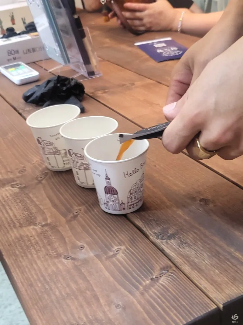 굼벵이 진액 시음도 해 주셨는데 선뜻 손이 가지 않아 먹어보지 못했지만 드신 분들은 마실만하시다고 하십니다. 굼벵이 진액은 고단백 저지방으로 간 기능 개선, 혈액 순환, 다이어트 효과, 면역기능, 빈혈, 숙취해소 등에 탁월한 효능이 있다고 합니다.