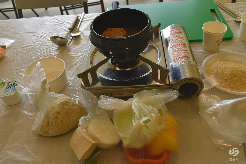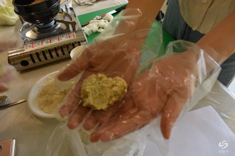 오늘은 황칠청국장을 직접 만들 수는 없고 황칠청국장을 이용한 여러 가지 요리를 만들어 보는 체험을 하기로 했습니다.