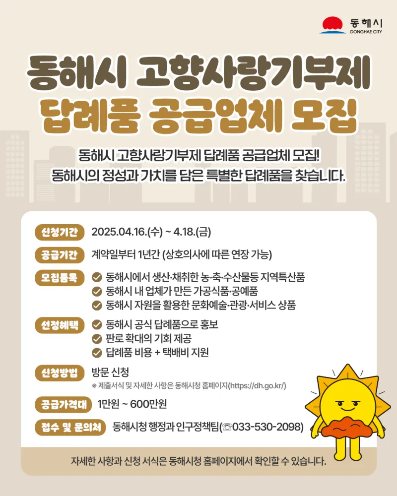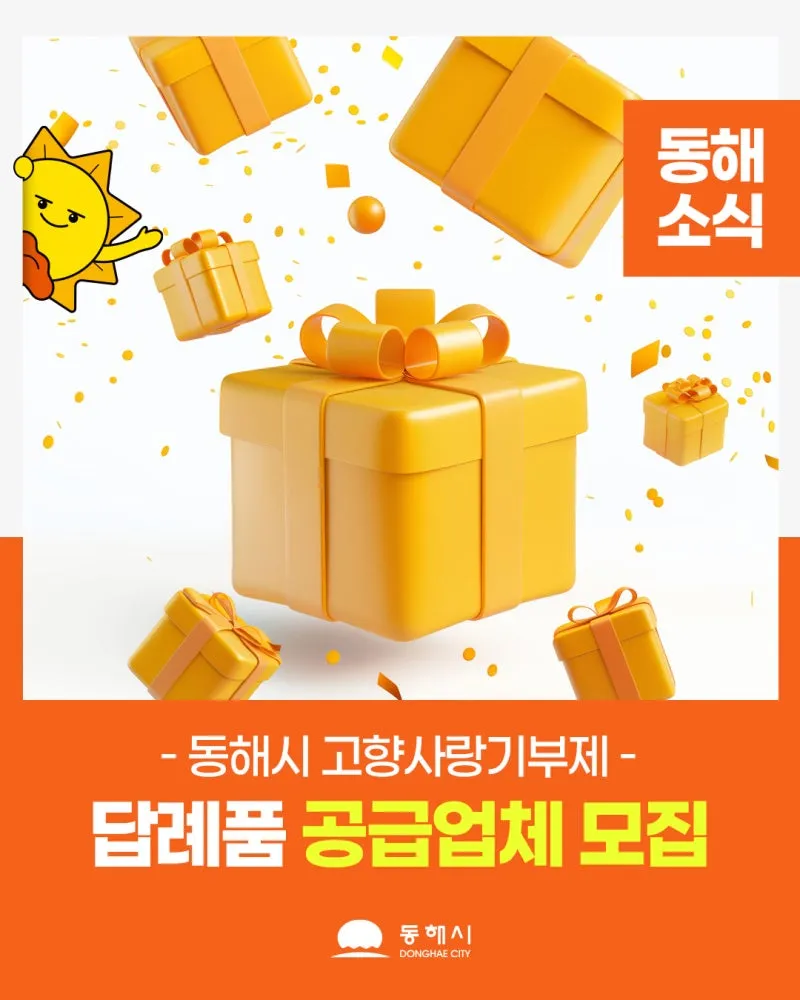 📢동해시 고향사랑기부제 답례품 공급업체 모집!