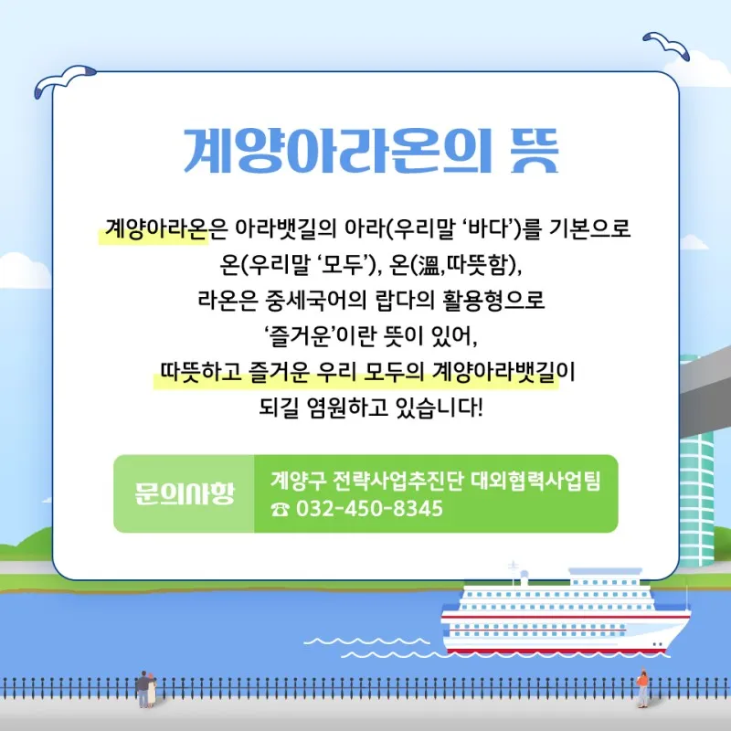 계양아라온은 아라뱃길의 아라(우리말 ‘바다’)를 기본으로
