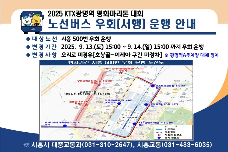 2025년 KTX광명역 평화마라톤 대회노선버스 우회(서행)운행 안내