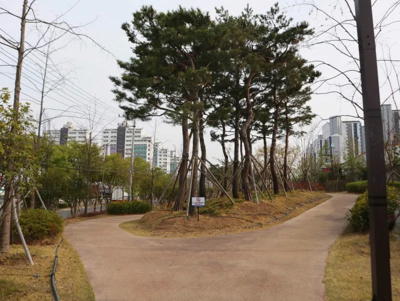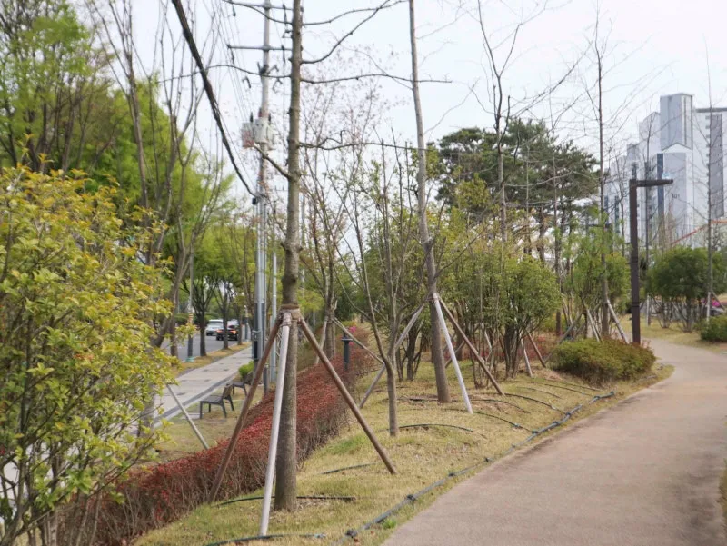 소나무, 팽마누, 이팝나무, 가시나무 등 17종 780주의 교목이 식재되어있어요.