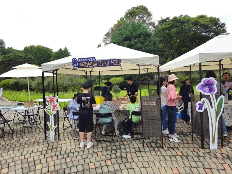 안내데스크에선 정원식물 자원과 모델 숲 정원 전시 및 숲 정원 인식 설문조사를 하고 있다.