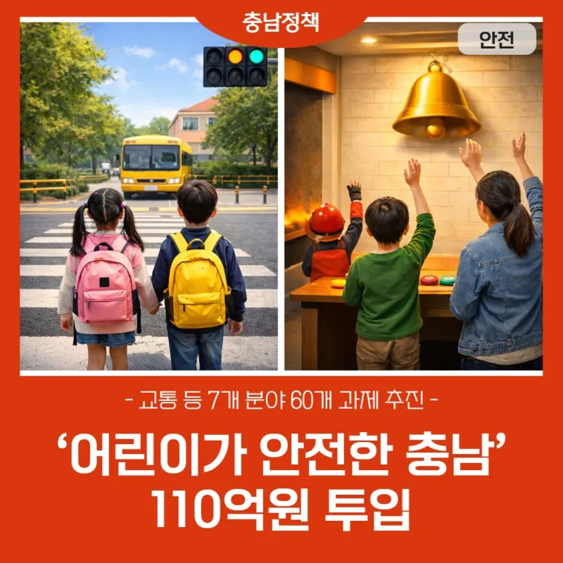 도는 △어린이 교통안전 △식품안전 △환경안전 △시설안전 △안전교육 △돌봄 △약취·유인 예방 7개 분야 60개 세부과제를 담은 ‘2026 충남도 어린이안전 시행계획’을 본격 추진한다고 22일 밝혔습니다.