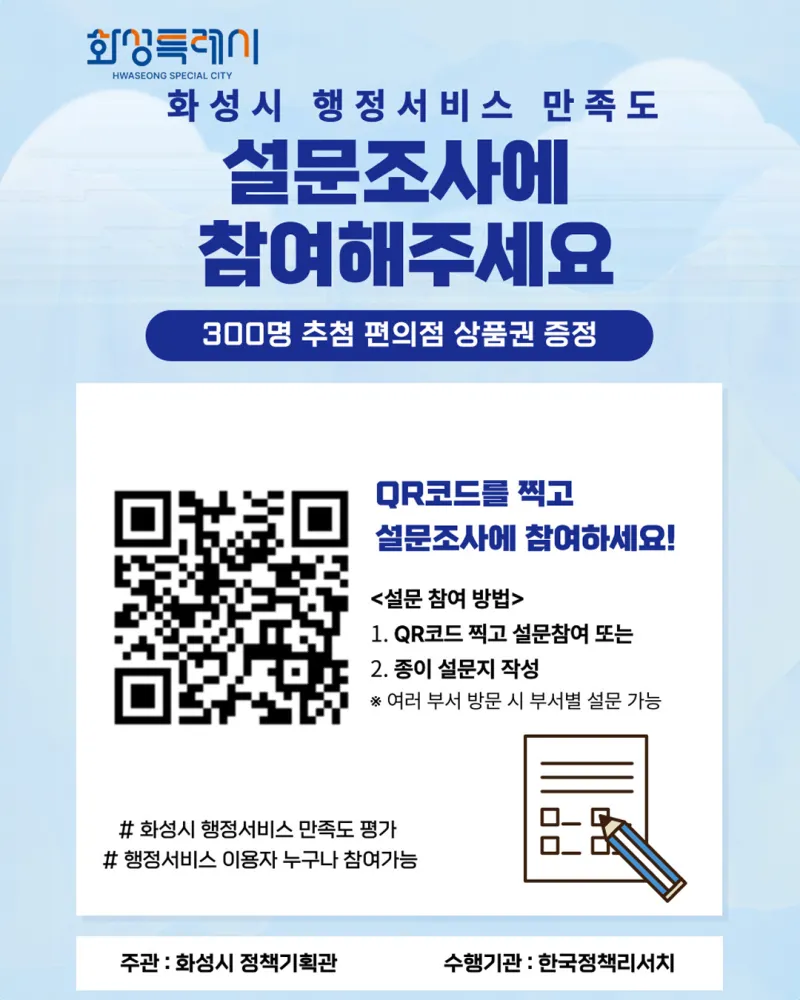 화성시 행정서비스 만족도 설문조사에 참여해주세요