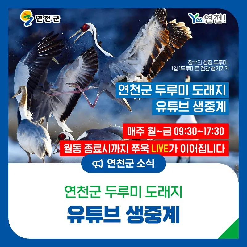 #연천군 #연천군청 #두루미 #멸종위기야생동물 #도래지 #유튜브 #라이브 #생중계 #채널 #공식유튜브 #자연친화