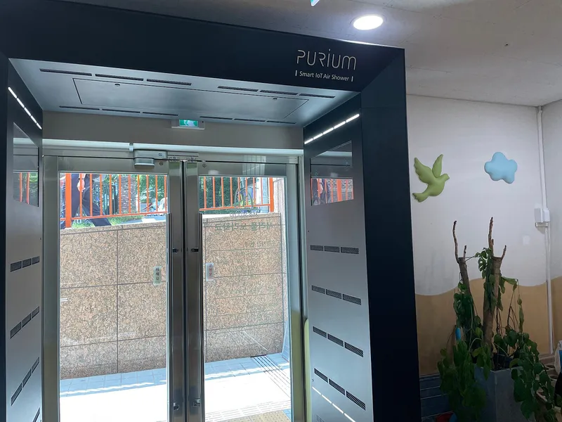 입장하자마자 미세먼지를 정화해주는 기계가 있어