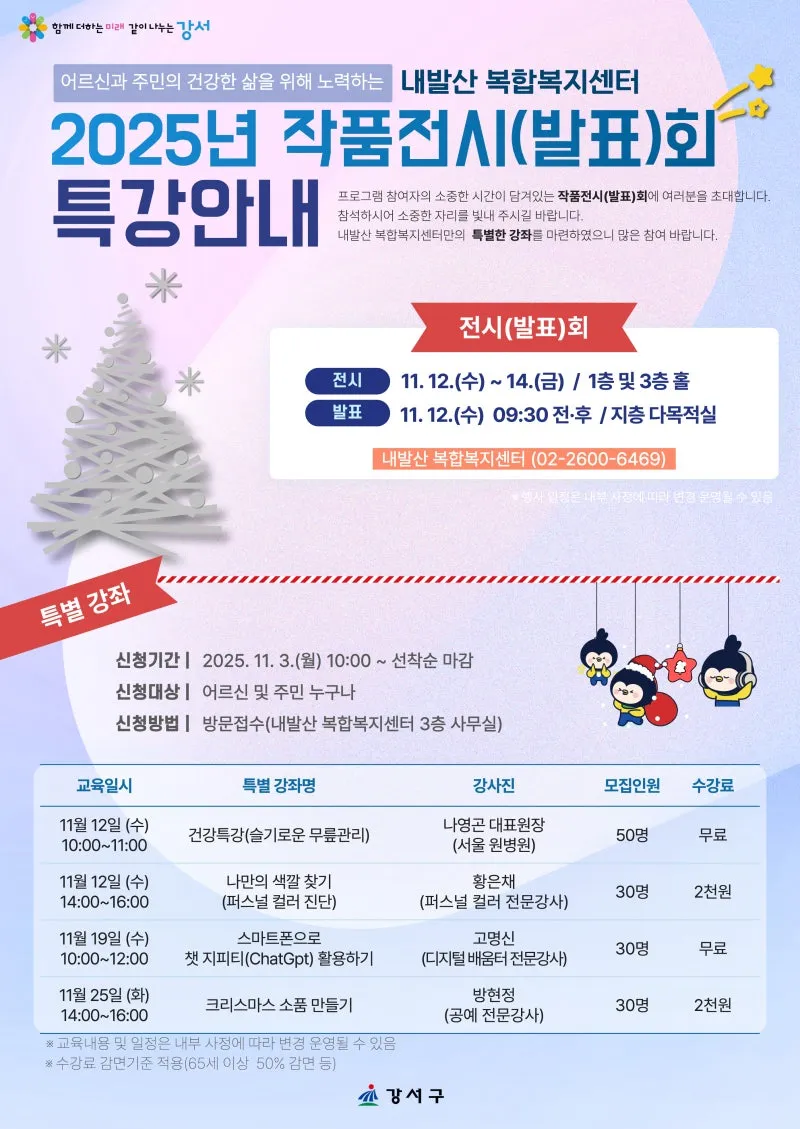 내발산 복합복지센터 2025년 작품전시(발표)회 & 특별강좌 안내