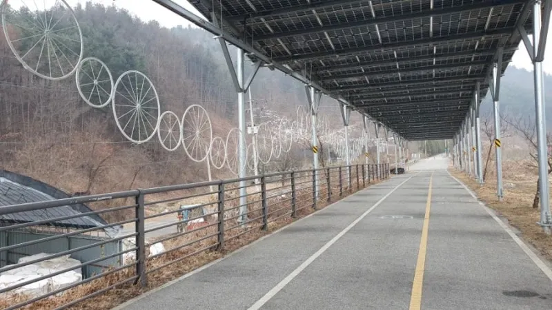 가평 북한강 자전거길 태양광 터널, 태양광 패널이 설치된 북한강 자전거길 라이딩