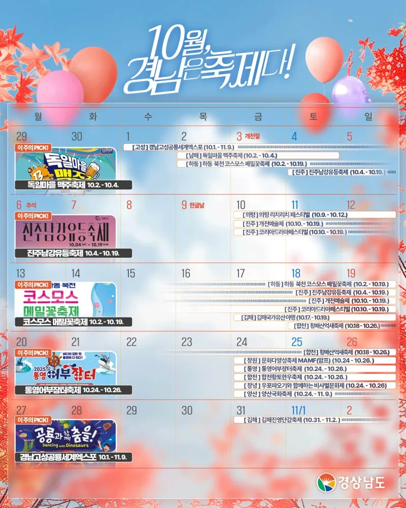 경남에서 만나는 10월 축제 총정리!
