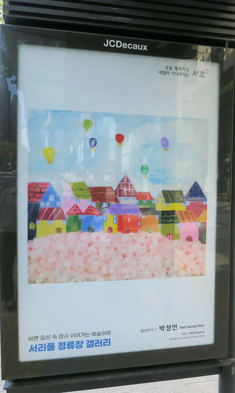 모든 서리풀 정류장에 작품이 전시되어도 좋겠다는 생각도 해보았습니다.