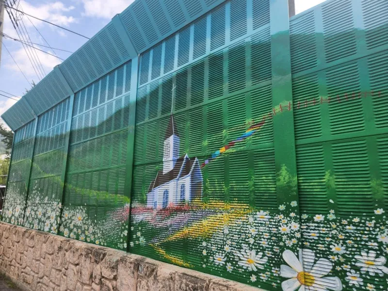 📍미탄면의 관문인 미탄중학교 방음벽이 청옥산 육백마지기를 주제로 한 벽화로 새롭게 단장돼 주민들의 호평을 받고 있습니다.