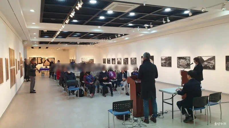 작가는 실향에 대한 그리움과 고립을 견뎌온 한실 사람들의 생활을 조명하고 천혜의 자연과 반구대 암각화의 전설을 사진에 담아 기록으로 남기고자 전시회를 개최하게 되었다고 인사말과 작가 사인회를 열었습니다.