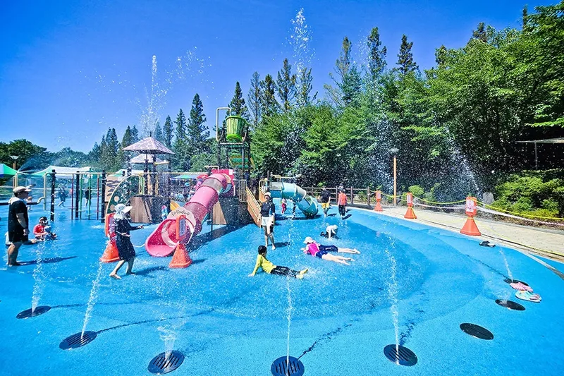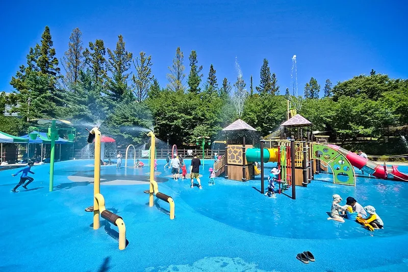 이곳은 다양한 물놀이장 시설이 갖춰져 있는 곳으로 주차장과 워터드롭, 워터터널, 플라워버켓, 기린벤치, 조합놀이터, 야외샤워기, 그늘막, 화장실까지 있습니다. 수심은 2cm이며 수질검사표까지 있어 안심하고 즐길 수 있습니다.