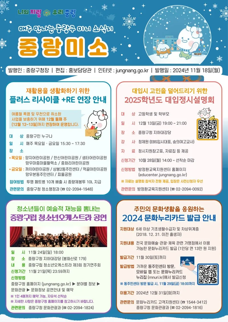 매주 만나는 중랑구 미니 소식지 「중랑미소」 ('24. 11. 18.)