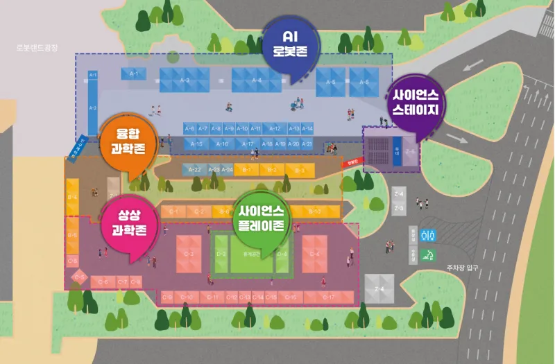 과학과 놀이가 결합된 즐거운 현장! 로봇랜드의 풍경과 어우러져 가족 단위 나들이에 딱이에요.