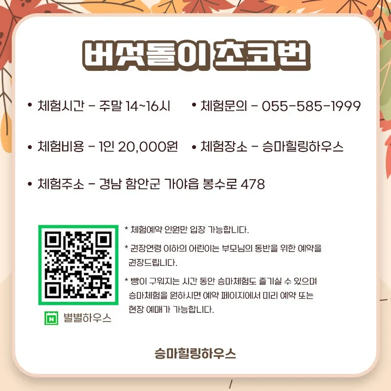 📍함안군 가야읍 봉수로 478 📍055-585-1999 체험비용 : 1인 20,000원 체험시간 : 주말 14시 ~ 16시