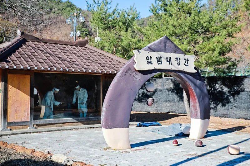 공주하면 가장 먼저 떠오르는 특산품은 역시 알밤일 텐데요, 그중에서 정안면에서 나오는 알밤은 공주에서도 제일 유명합니다. 그래서 그 알밤을 이용한 알밤 대장간을 만들었습니다.