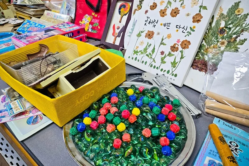 추억의 공기와 구슬, 윷놀이 등 어릴 때 놀았던 추억의 장난감도 전시되어 어른들의 향수를 자극하는데요, 요즘 아이들도 많이 갖고 놀아서 함께 놀이를 즐겨도 좋겠네요.