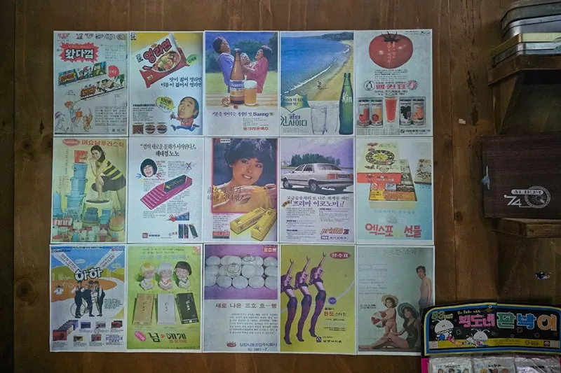 추억의 맷돌과 어릴 때 보았던 광고사진은 반가움과 즐거움을 함께 느낄 수 있는데요, 과거 그 시절의 광고를 보며 아이들에게 얘기해 주고 난로 위에 올려놓았던 양은 도시락은 그때 그 시절을 떠올리게 합니다.