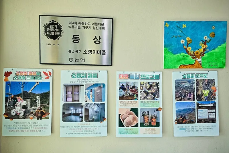 농촌체험마을은 공주시 정안면에 자리 잡고 있으며 월산초등학교였던 폐교를 2010년 2월 14일에 소랭이마을(농촌체험마을)로 바꾸었다고 합니다. 이곳은 숙소와 모임, 행사, 장소 제공 및 체험활동을 할 수 있습니다.