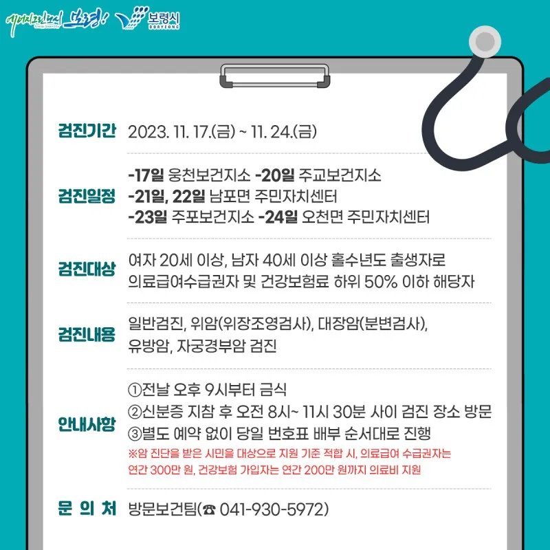 보령시에서는 지역주민의 건강증진과 검진 편의 제공을 위해