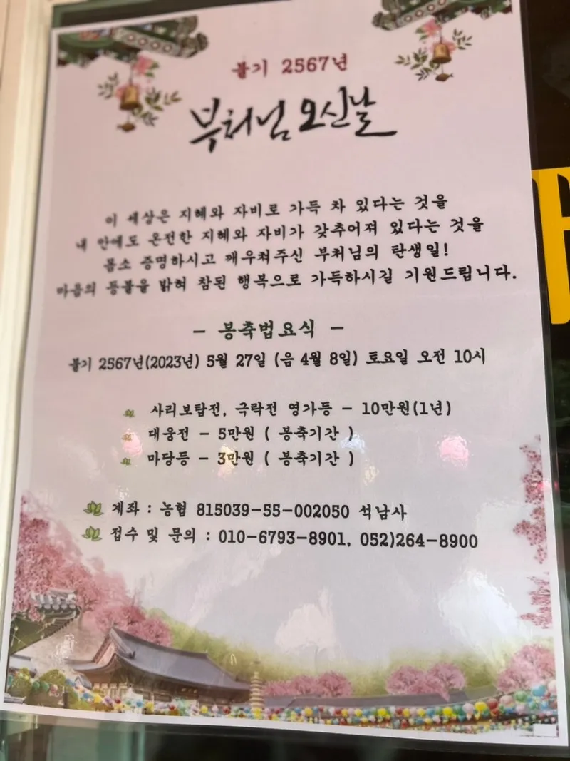 부처님 오신 날 등 접수도 한다고 하니 참고!
