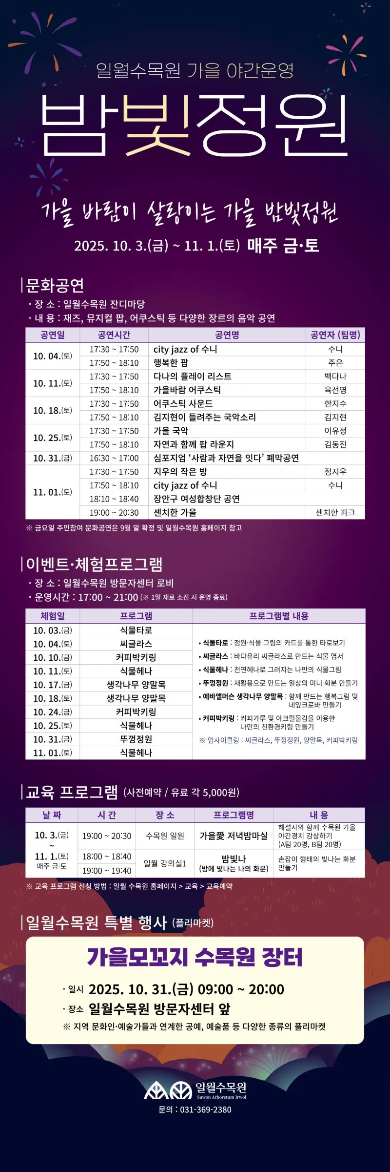 2025 수원수목원 가을 야간운영 <밤빛정원>ㅣ일월수목원, 영흥수목원 프로그램 안내