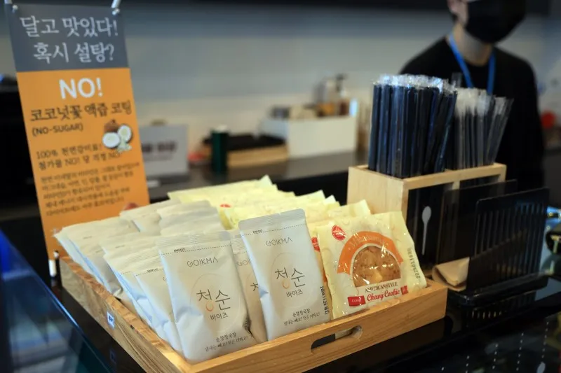 코코넛 꽃 액즙 코팅으로 자연스러운 단맛이 좋은 바삭바삭 청국장환 '청순'은 된장(고추장) 아이스크림에 토핑으로 얹어 먹으면 제맛입니다. 영양만점 찹쌀 유과도 맛납니다.