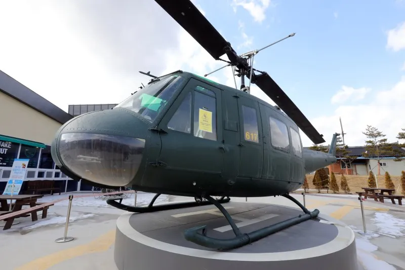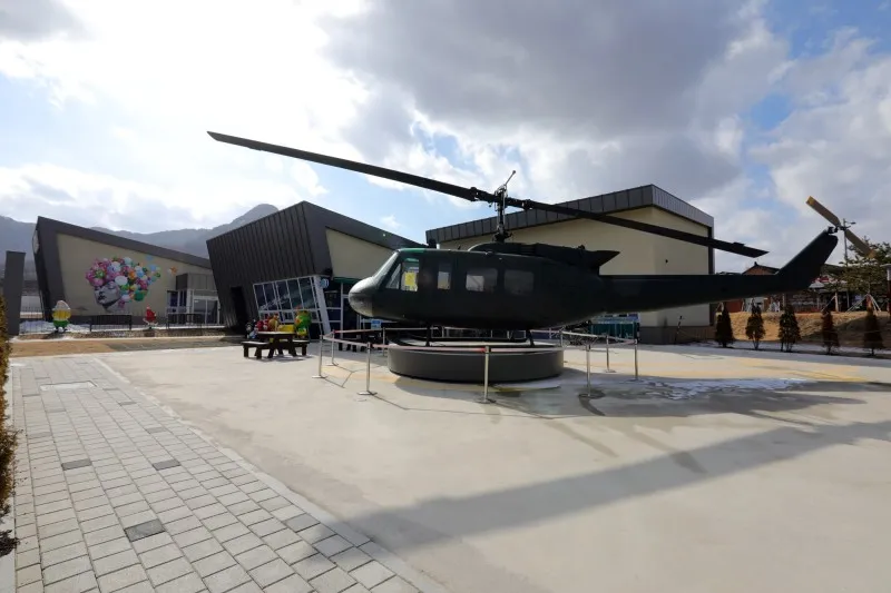 모형이 아니라 실제 크기의 헬리콥터가 금방이라도 이륙할 것처럼 실감 나는 게 자꾸 들여다보게 되는데요, 탑승 체험이 따로 없지만 보는 것만으로도 호기심을 불러일으키는 헬리콥터 앞에서 인증 사진 필수입니다.
