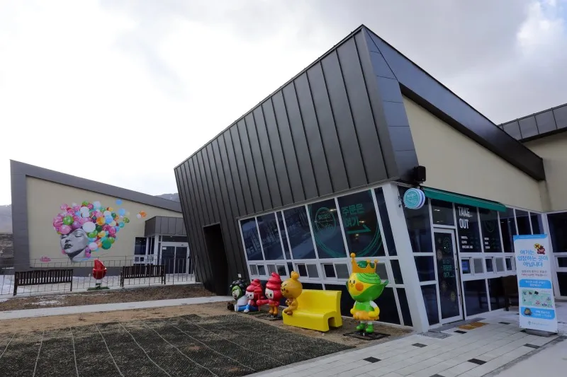 입춘이 코앞이어선지 바람결이 조금 누그러진 듯 상쾌한 바람이 기분 좋게 하는 아침나절 순창 발효 테마파크 전경입니다. 빨간 맛 순창의 미래 100년을 책임지는 곳인데요, 그동안 공사 중이었던 음식스토리마켓 B동과 추억의 식품 거리, 고추식물원도 완성돼 이제 순창발효테마파크 모든 건물이 모습을 드러냈습니다.