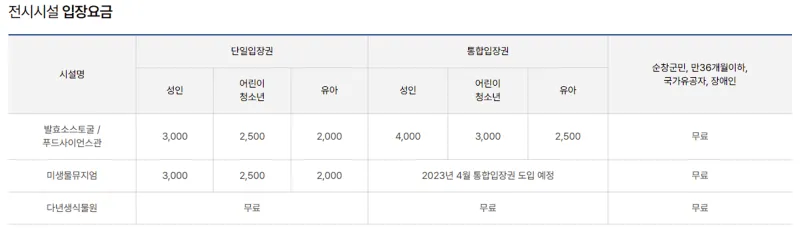 순창푸드사이언스관을 비롯해 발효소스토굴과 미생물 뮤지엄은 단일 입장권으로도 입장할 수 있지만, 통합 입장권을 이용하면 두 곳을 거의 하나의 가격으로 입장할 수 있습니다. 그래서 많은 관람객이 통합 입장권을 구입해 푸드사이언스관에 이어 발효소스토굴도 관람하더군요.