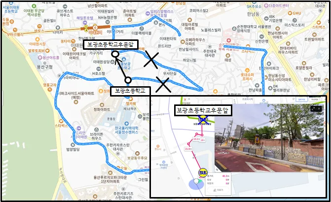 ※미운행 정류소(6개소)를 이용하실 승객께서는 ‘보광초등학교’, ‘보광초등학교 후문’ 정류소를 이용하시길 바랍니다.