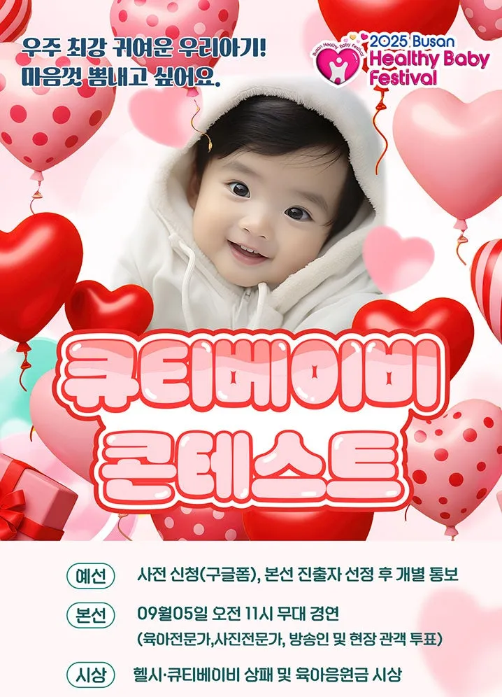 ✅ 건강한 우리 아기, 튼실한 우리 아이 자랑 타임! ✅ 사전 신청자 대상 소아과 및 산부인과 전문의들이 의학적 데이터에 기초해 선발 ✅ 예선 통과자 대상으로 박람회 메인 무대에서 관객들과 함께하는 경연식 결선 무대 ✅ 상장과 상금, 부상 수여 |