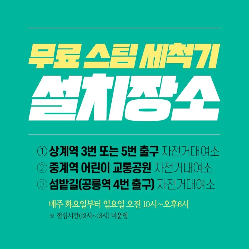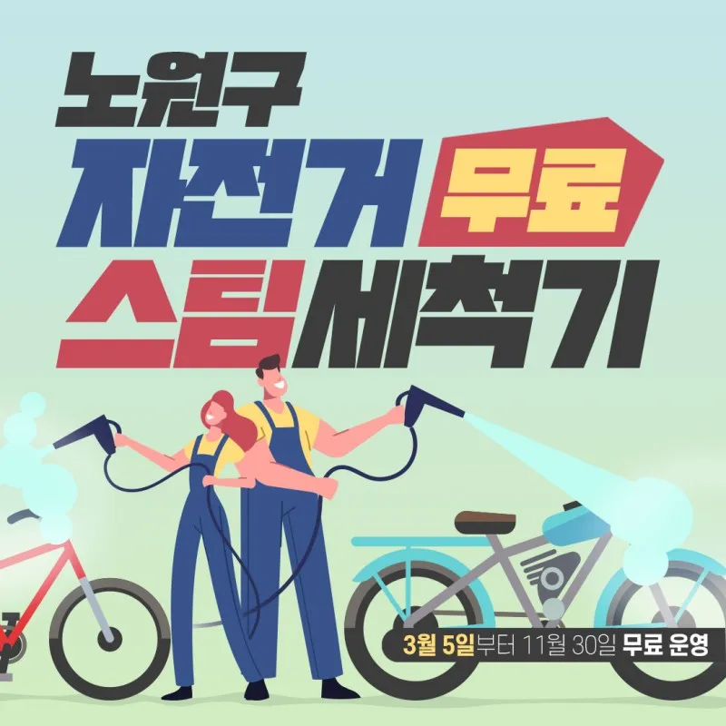 자전거 스팀 세척기는 구민 건강 활동 지원을 위한 노원구만의 무료 서비스입니다!