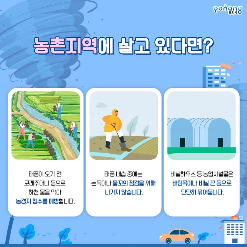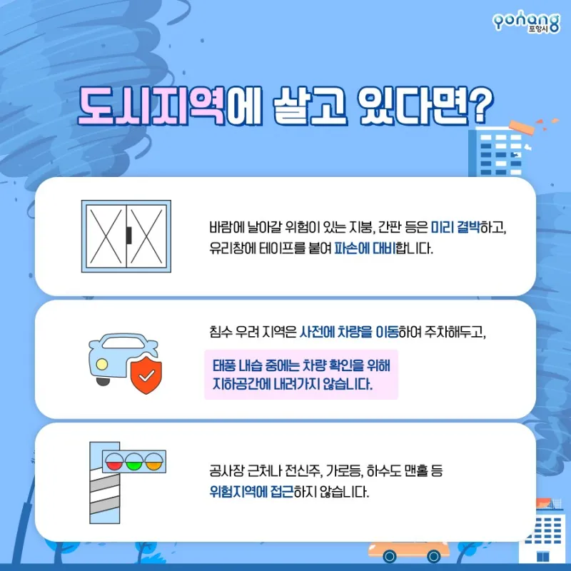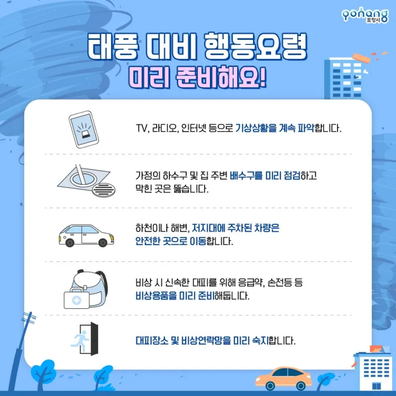 제6호 태풍 ‘카눈’ 북상 중! 태풍 대비 행동요령 미리 알고 대처해요!