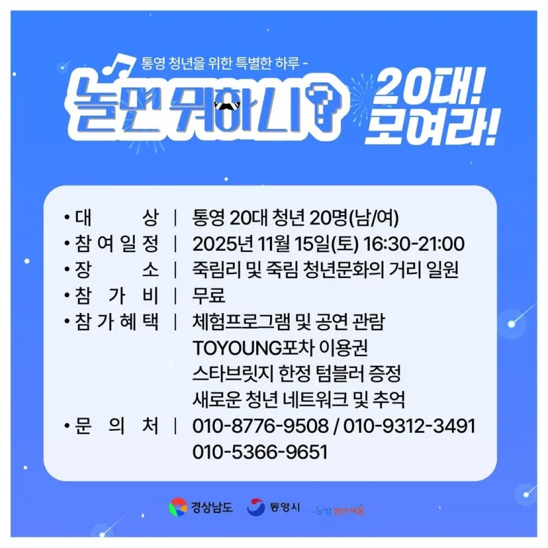 통영 청년 20명 (남/여) (18~45세)