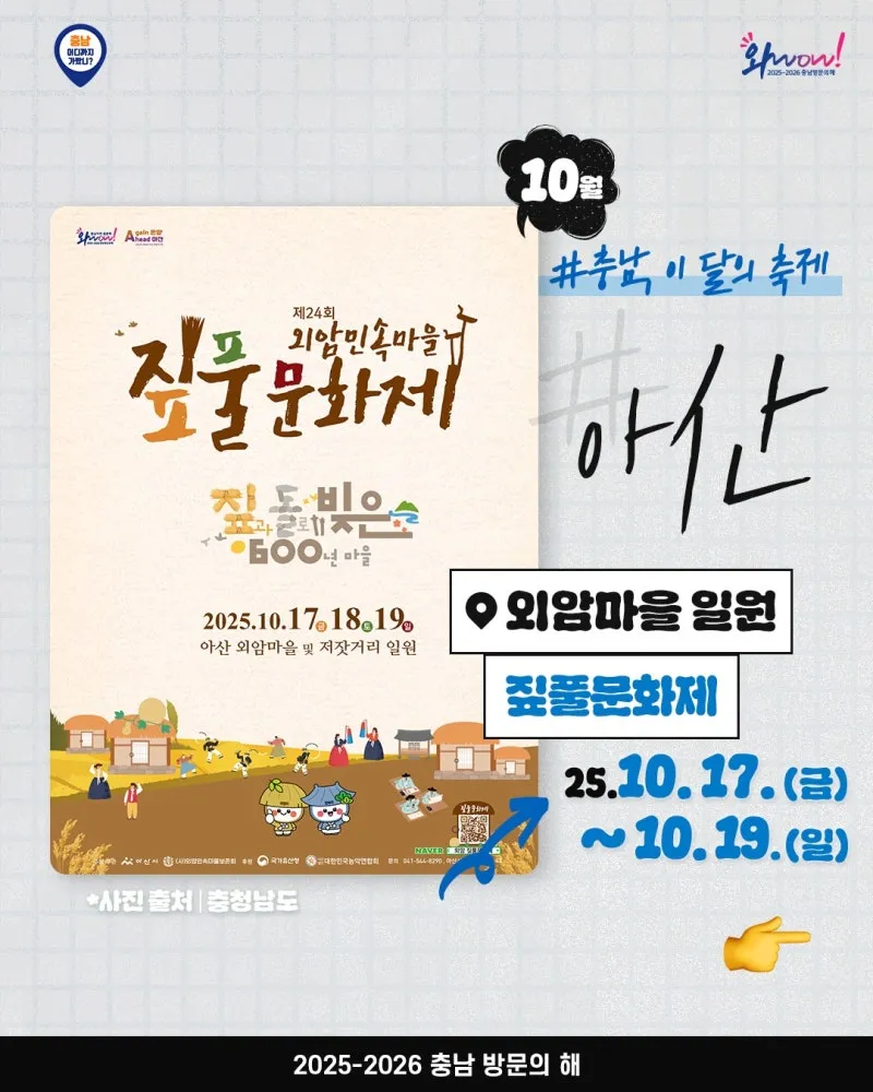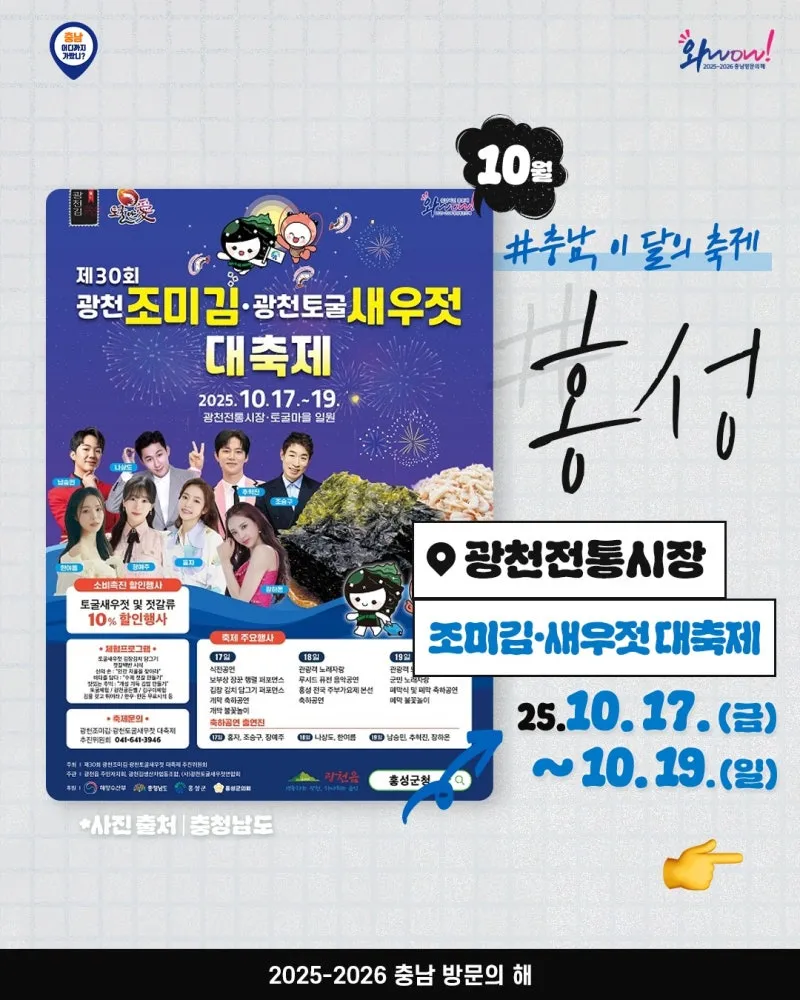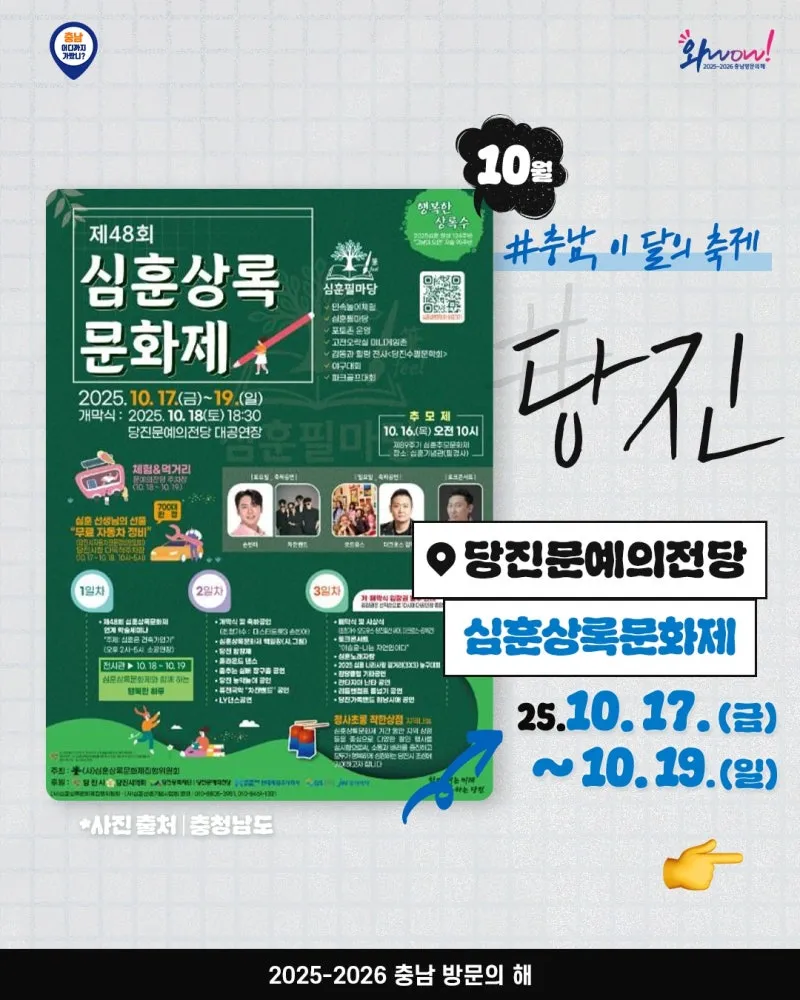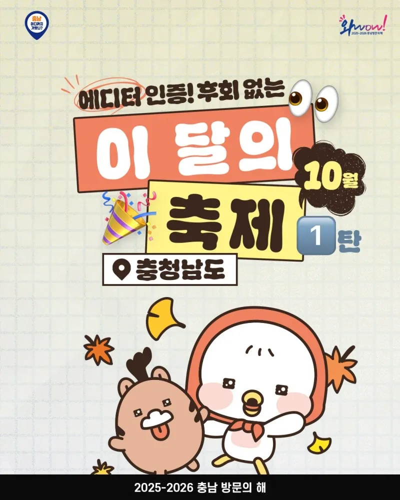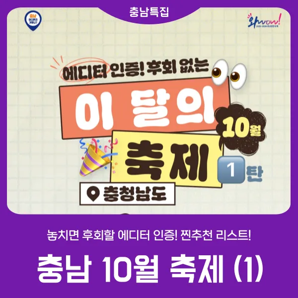 {"title":"[2025 충남 방문의 해] 이 달의 축제_10월_1탄","source":"https://blog.naver.com/sinmunman/224034210038","blogName":"충청남도 ..","domainIdOrBlogId":"sinmunman","nicknameOrBlogId":"충청남도","logNo":224034210038,"smartEditorVersion":4,"meDisplay":true,"lineDisplay":true,"outsideDisplay":true,"cafeDisplay":true,"blogDisplay":true}