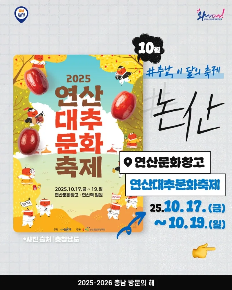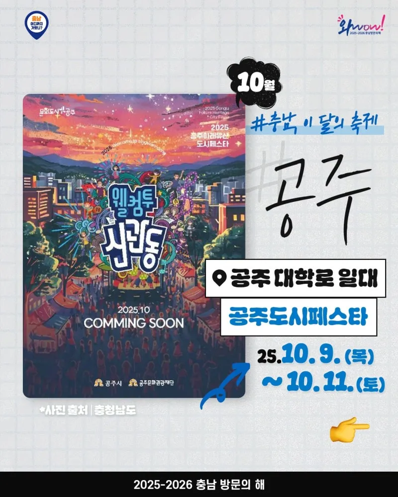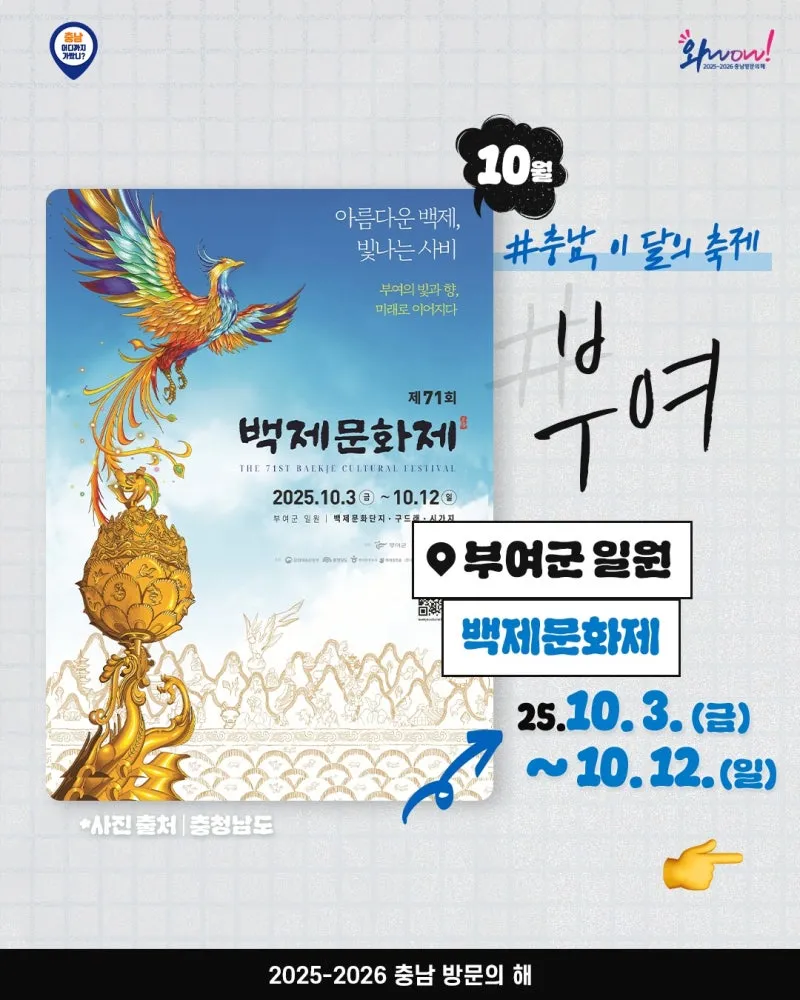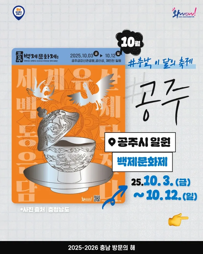 {"title":"[2025 충남 방문의 해] 이 달의 축제_10월_1탄","source":"https://blog.naver.com/sinmunman/224034210038","blogName":"충청남도 ..","domainIdOrBlogId":"sinmunman","nicknameOrBlogId":"충청남도","logNo":224034210038,"smartEditorVersion":4,"meDisplay":true,"lineDisplay":true,"outsideDisplay":true,"cafeDisplay":true,"blogDisplay":true}