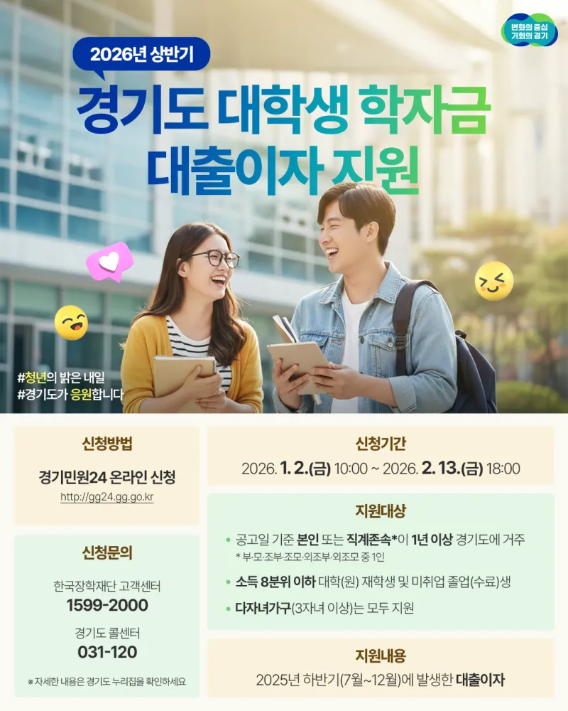 내일을 준비하는 청년을 위해! 2026년 상반기 경기도 대학생 학자금 대출이자 지원 안내
