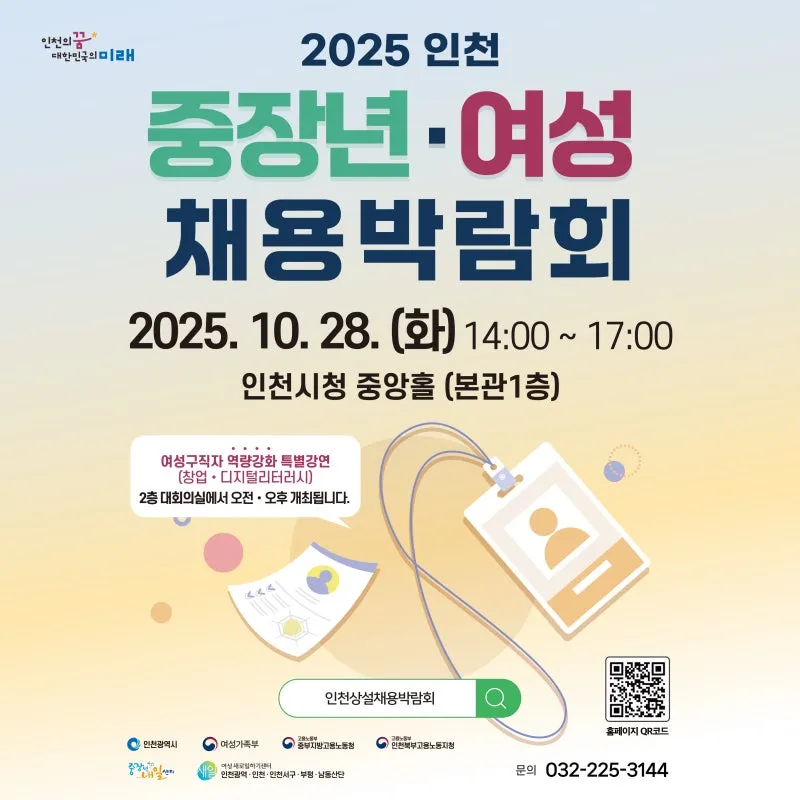 2025 새로운 시작을 꿈꾸는 중장년·여성 여러분 주목하세요, 취업의 문을 여는 특별한 기회! 인천 중장년ㆍ여성 채용박람회