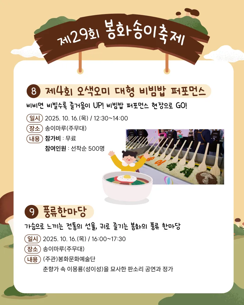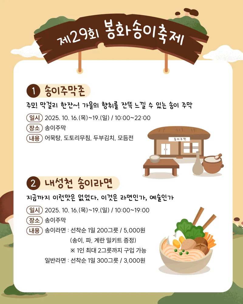 [소식] 제29회 봉화 송이축제 프로그램 안내
