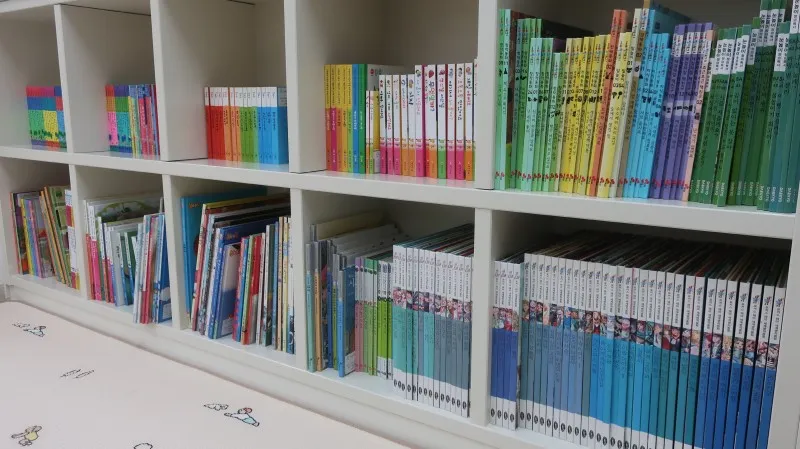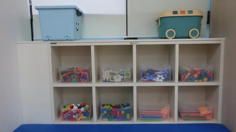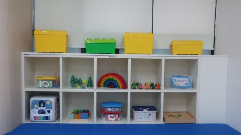 블록부터 원목 놀잇감, 자석으로 되어 있는 장난감, 레고 등 어린아이부터 유치원, 초등학생까지 가지고 놀 수 있는 것이 많이 있습니다. 또, 한 편에는 새 책도 구비되어 있습니다.