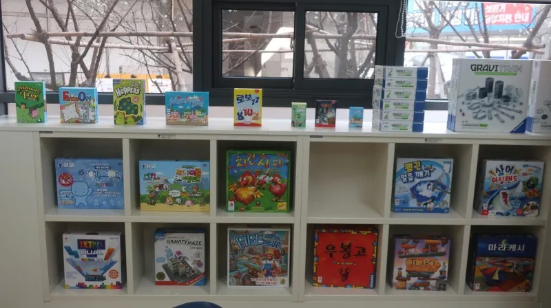 테이블, 의자와 모니터가 설치되어 있으며, 다양한 보드게임도 있어 초등학생들이 이용하면 좋을 것 같습니다. 이번 기사 취재 시 초등학교 1학년이 된 아들도 같이 갔었는데 다양한 보드게임들을 가지고 놀다 보니 시간이 정말 빠르게 지나갔습니다.