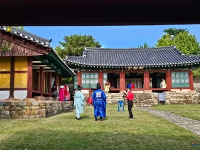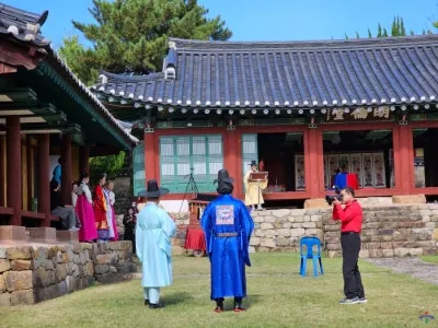 아래 사진은 우연한 기회에 향교 명륜당 앞마당에서 전통혼례식 장면을 볼 수 있었습니다. 향교에서 올리는 전통혼례라니 제법 잘 어울렸습니다.