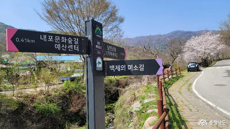 벚나무에는 '내포문화숲길' 표지 띠도 걸려 있습니다.