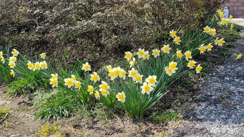 다시 벚꽃길 아래로 영화의 장면처럼 걸어나오는 길에 길 옆으로는 예쁜게 핀 수선화가 "나도 있어요~"하며 필자를 불렀습니다^^