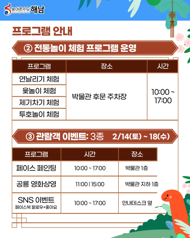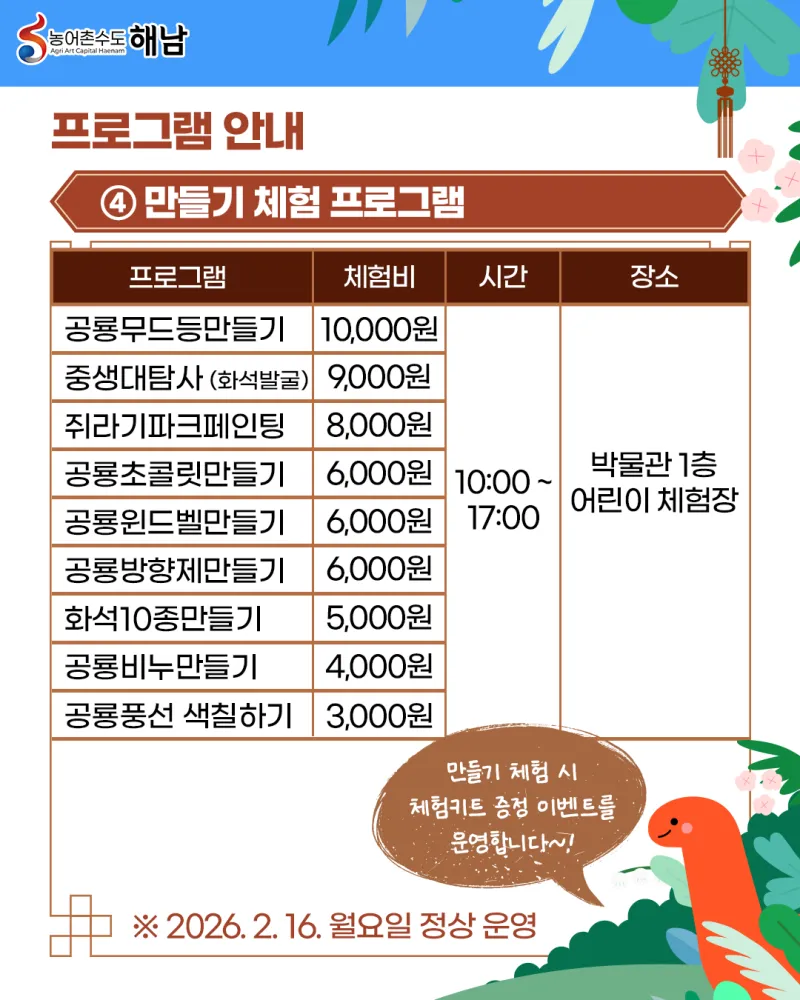 해남공룡박물관 2026년 설 명절 특별 프로그램 안내 🎉🦖